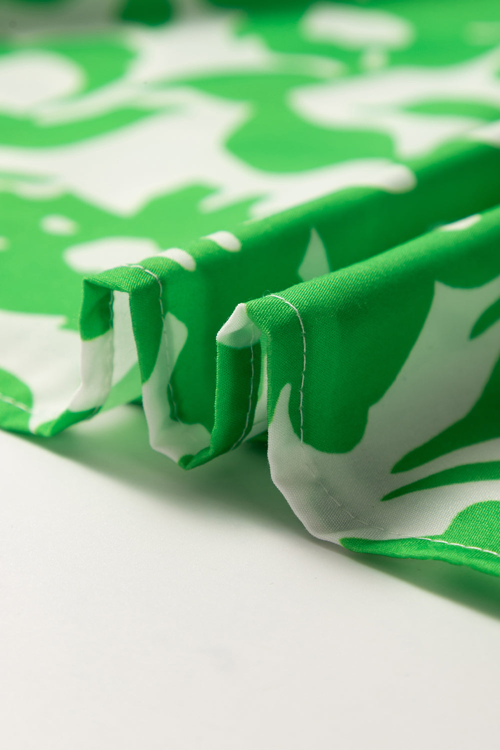 Green Floral Print Puff Half Sleeve V Neck Babydoll Dress