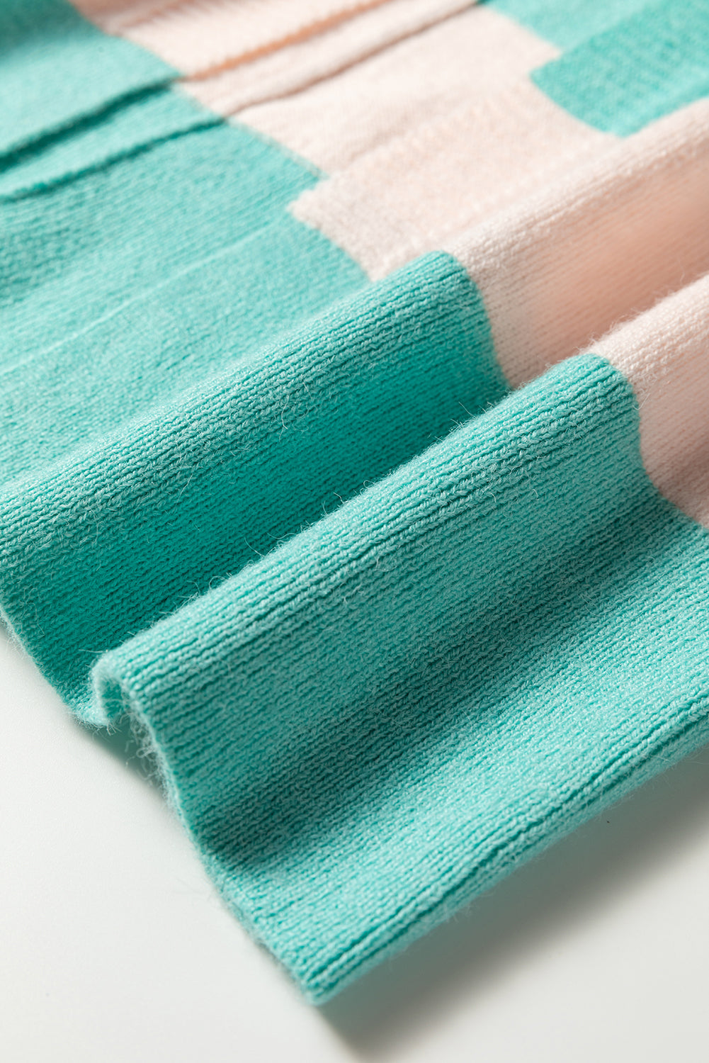 Iceland Blue Colorblock Knit Open Front Short Casual Cardigan