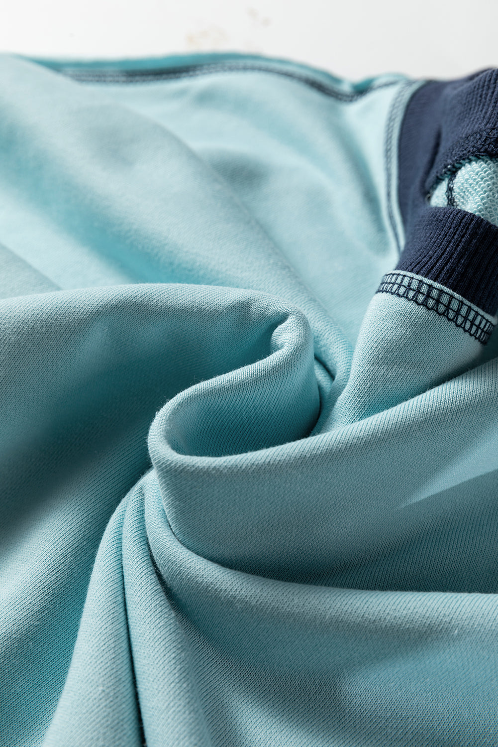 Iceland Blue Contrast Edge Colorblock Patchwork Crop Sweatshirt