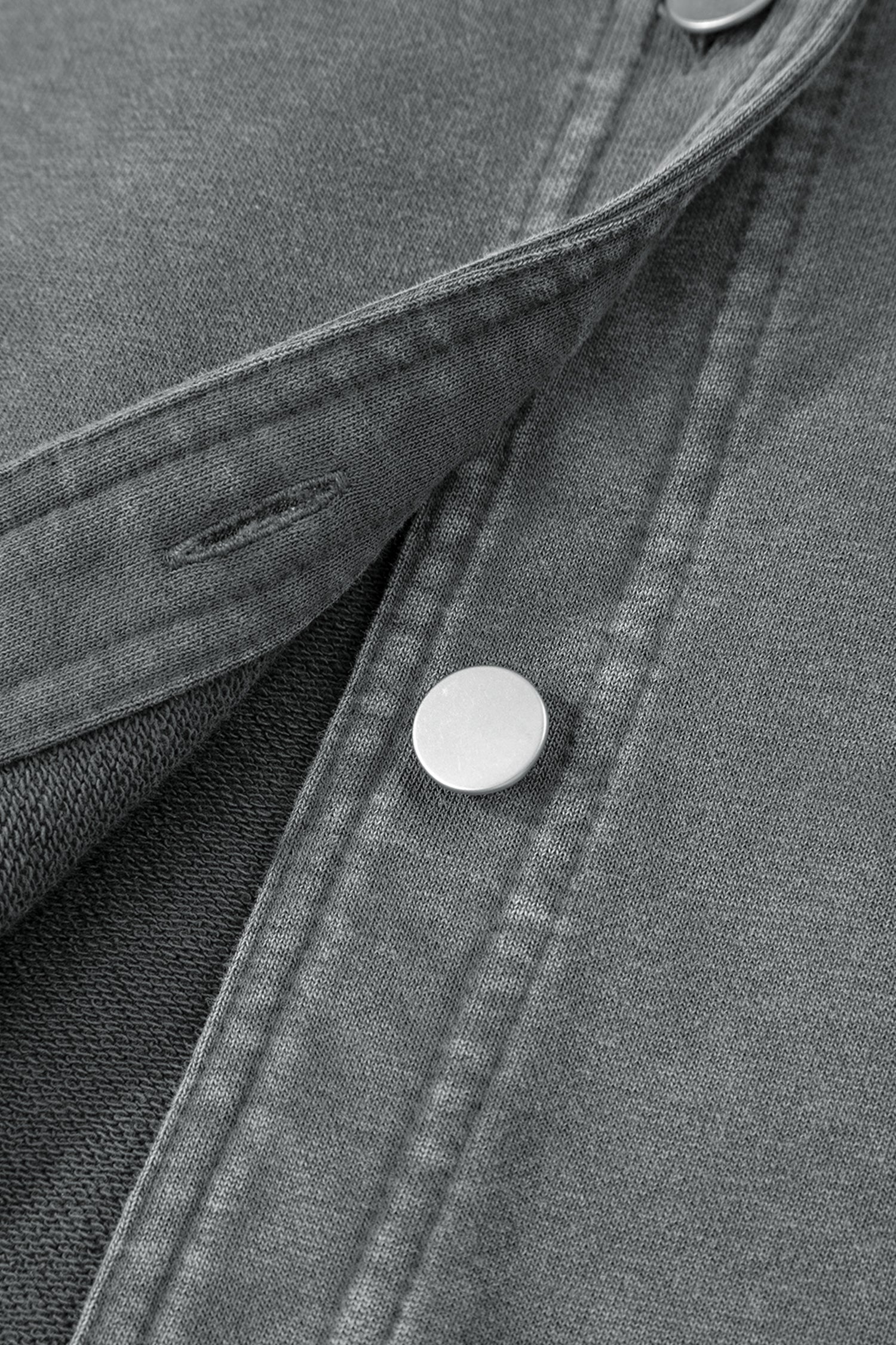 Medium Grey Mineral Wash Chest Pockets Drop Shoulder Shacket with Side Slit