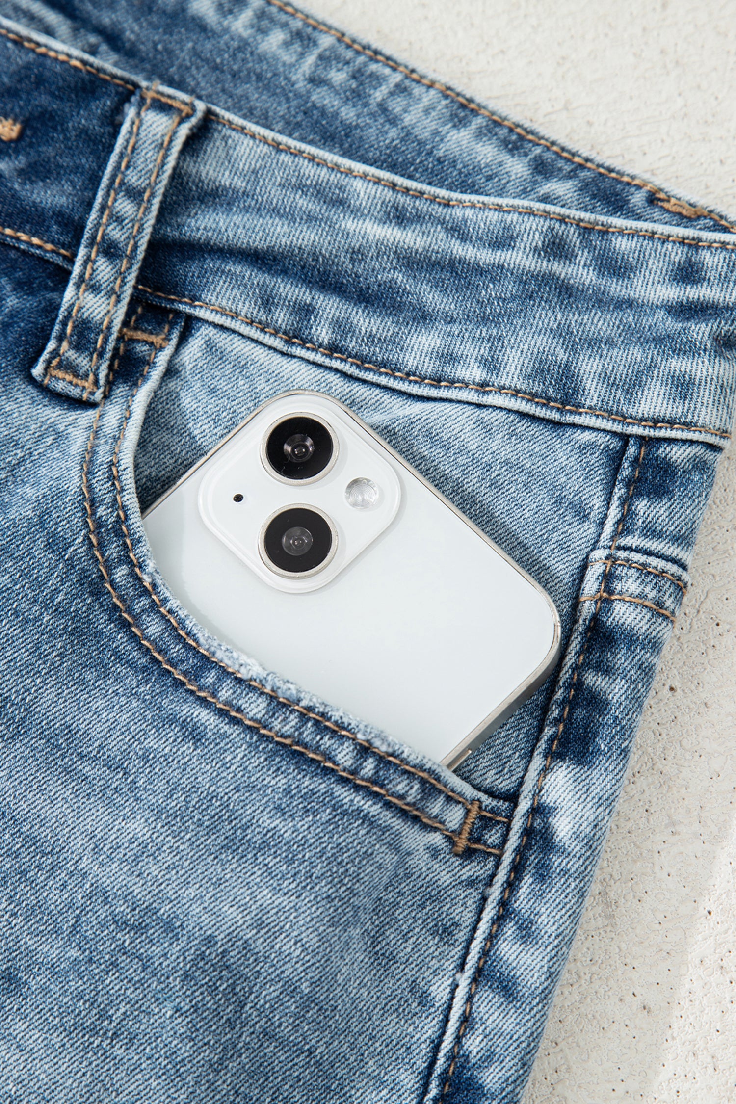 The raw hem and ripped legs design showcase a fashionable streetwear style.