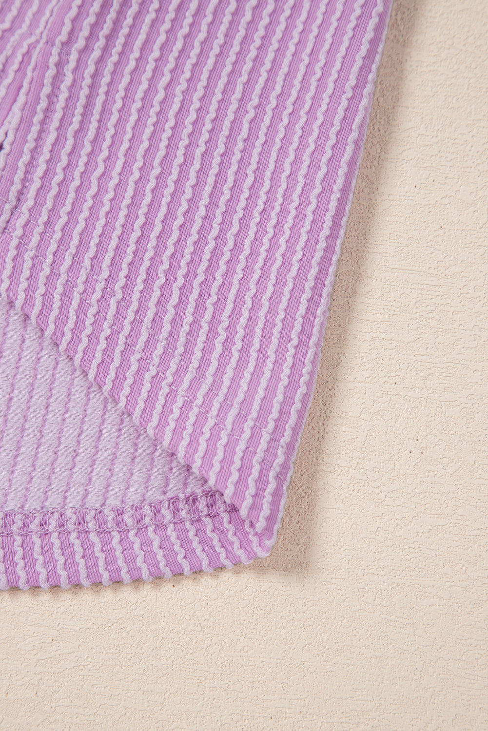 Orchid Bouquet Corded Flap Pocket Collared Buttoned Short Sleeve Blouse