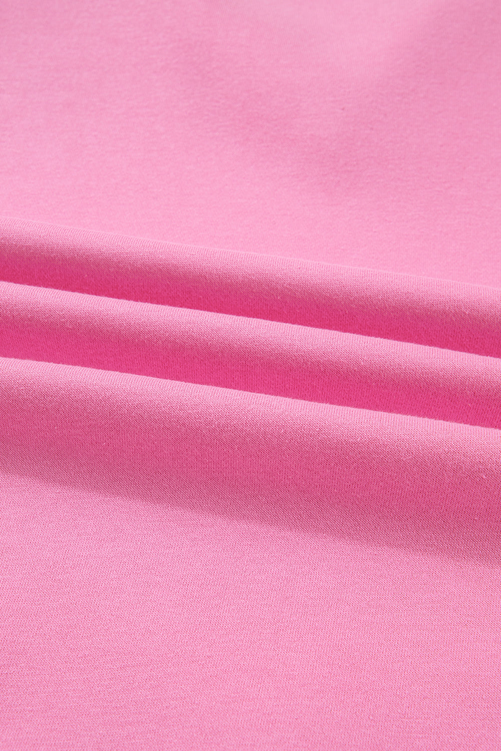 Pink Plus Size Contrast Polo Collar Floral Patchwork Elastic Cuffs Long Sleeve Top