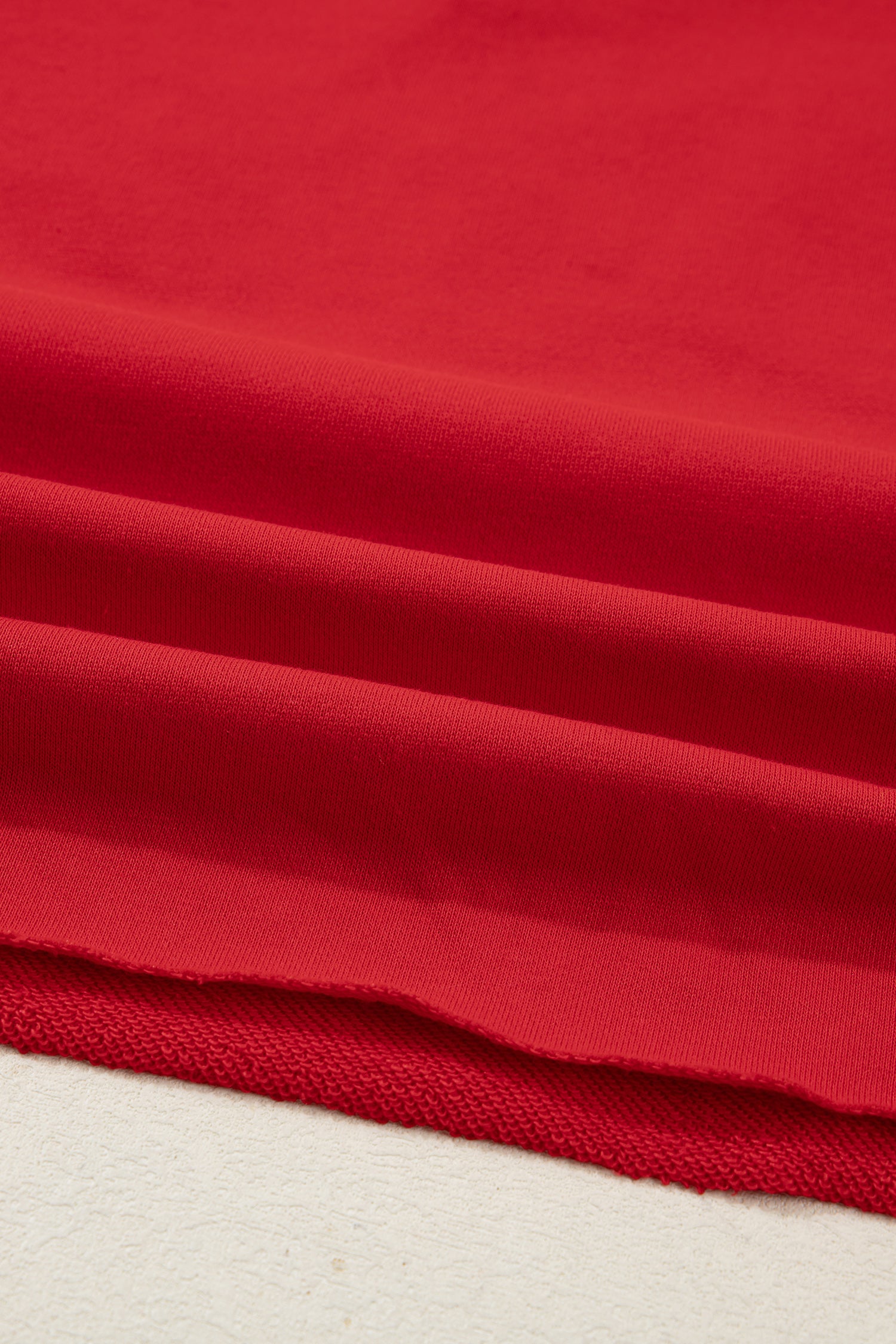 Tomato Red Christmas Tree Embroidered Notched Neck Cropped Sweatshirt
